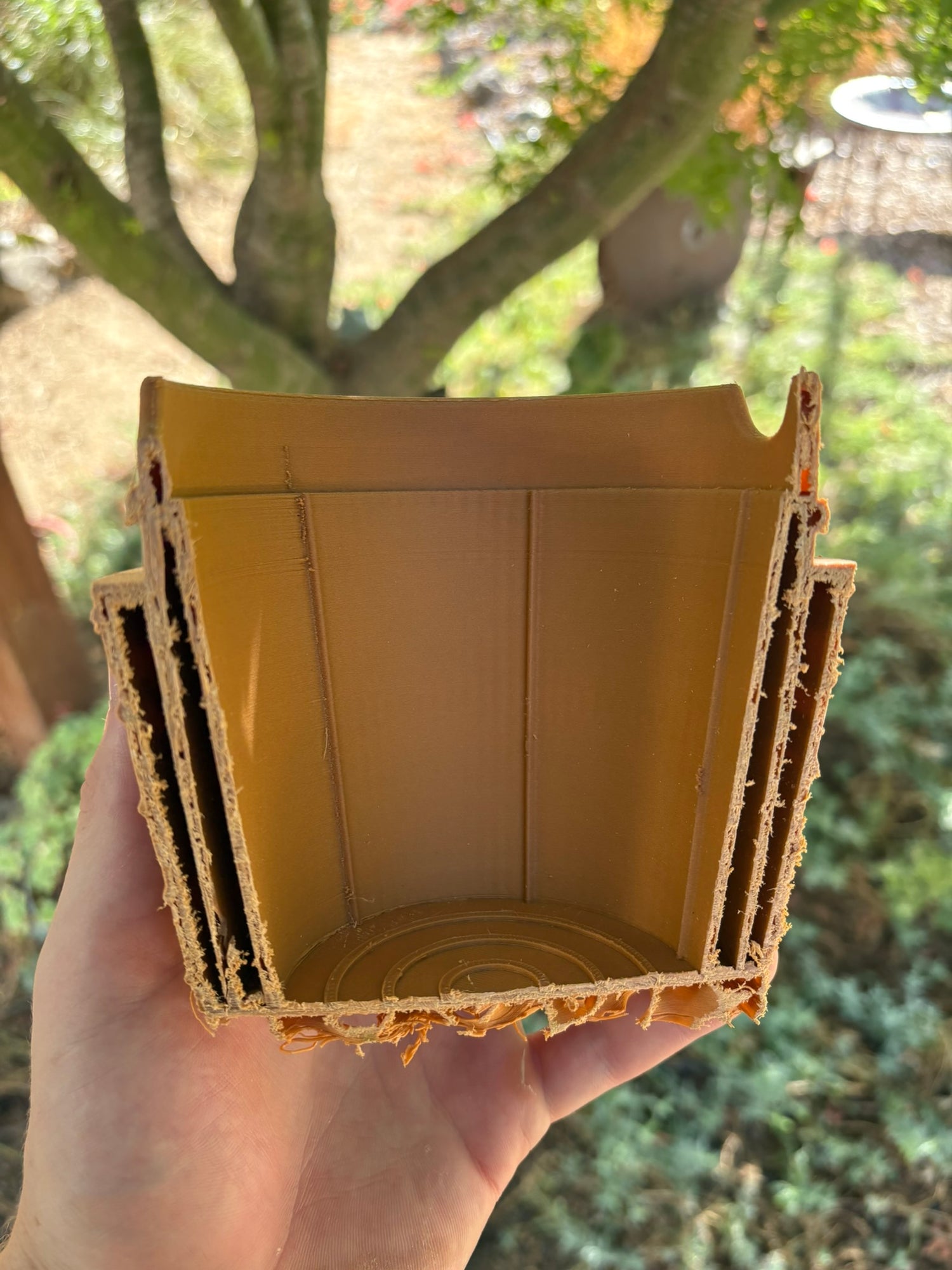 To show you how it works I sawed through a PintPod! Just like the fiberglass in your walls, the insulation comes from trapping air. 3D Prints are especially good at this because they don't print as solid plastic, as you can see on the bottom of the split PintPod they use infill patterns, which trap even more air! This technology allows me to keep your ice cream frozen for 3+ hours